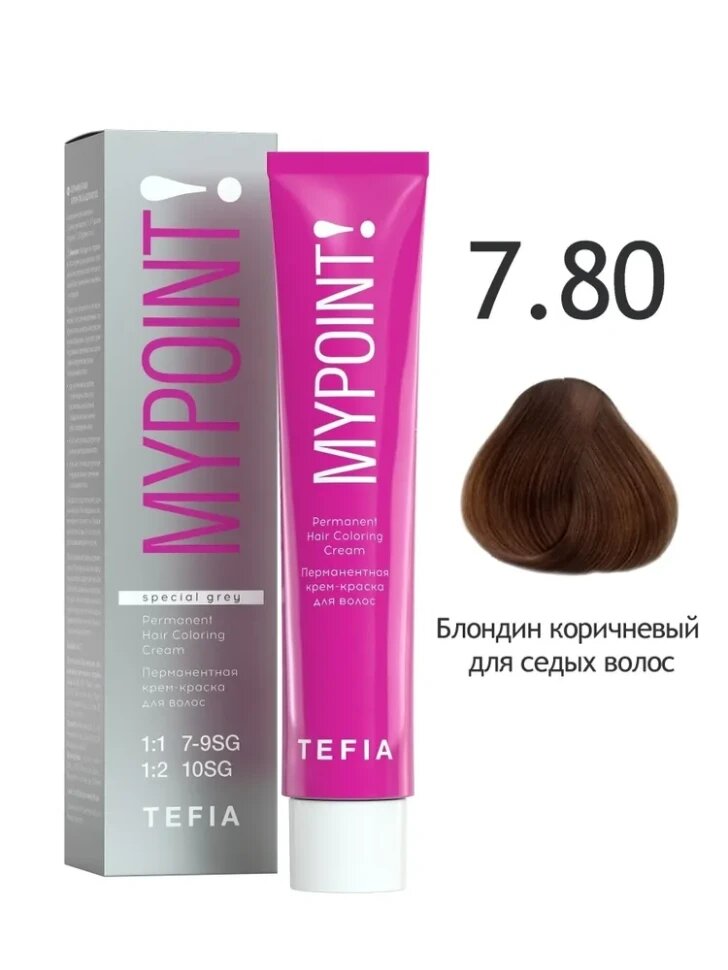 Купить TEFIA, MYPOINT, 7-80, Крем-краска блондин коричневый, для седых волос, 60 мл