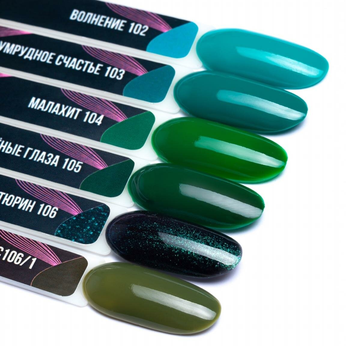 Serebro гель лак для ногтей зеленый "Авантюрин" для маникюра и педикюра №106, 11 мл