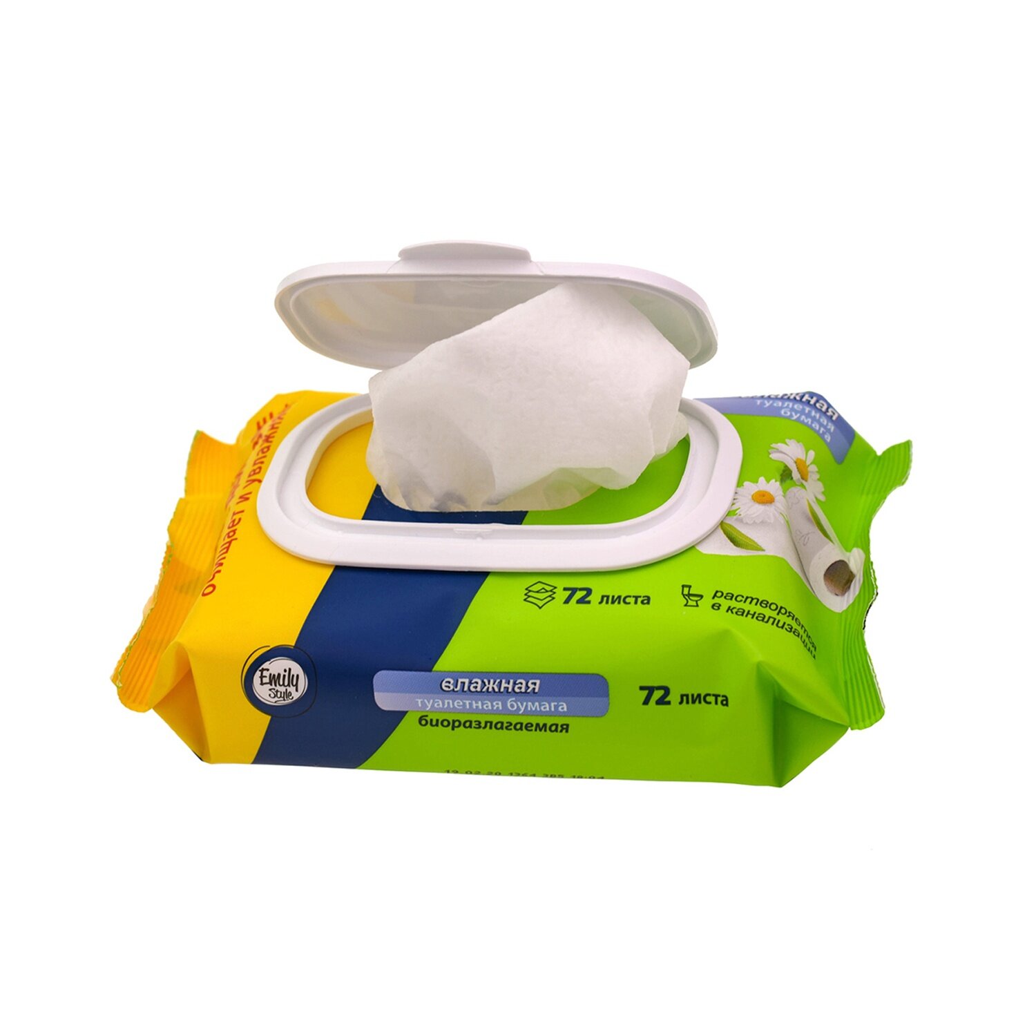 Влажная туалетная бумага Emily Style, растворяющаяся, с крышкой 72 шт