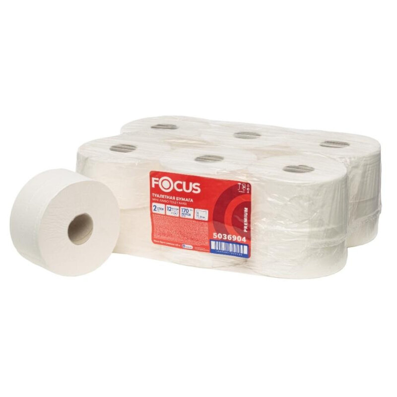 Бумага туалетная в рулонах Focus Mini Jumbo 2-слойная 12 рулонов по 170 метров (артикул производителя 5036904)