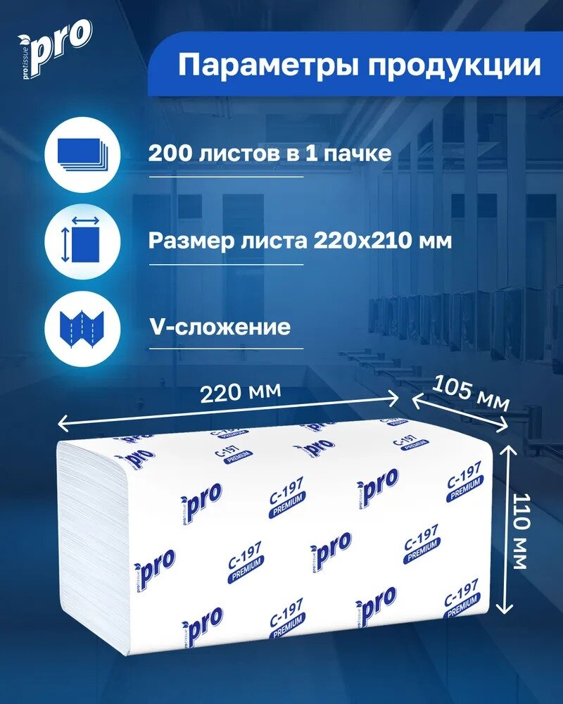 СохранитьPROtissue С197 бумажные полотенца для диспенсера V-сложения 2-слойные белые 20 пачек по 200 листов интересное:
