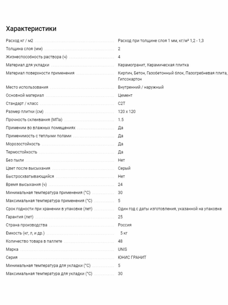 Ниже Вы можете прочитать отзывы на Клей для плитки, керамогранита и камня UNIS Гранит (C2T), 5кг, ознакомится с подробными характеристиками, посмотреть интересные обзоры и фотографии на Клей для плитки, керамогранита и камня UNIS Гранит (C2T), 5кг.