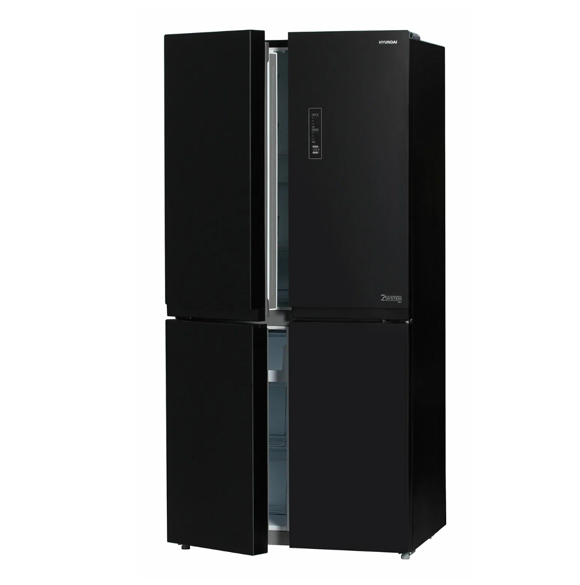 Холодильник Side by Side трехкамерный Hyundai CM5005F черное стекло