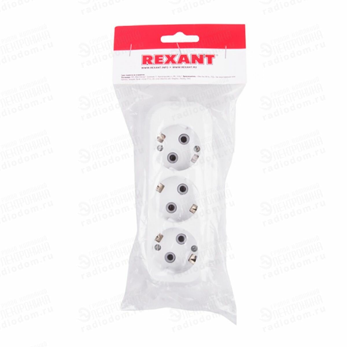 REXANT роз. колодка 3 гн. 10А (2200Вт) земля, белый 11-8704 (арт. 609617)