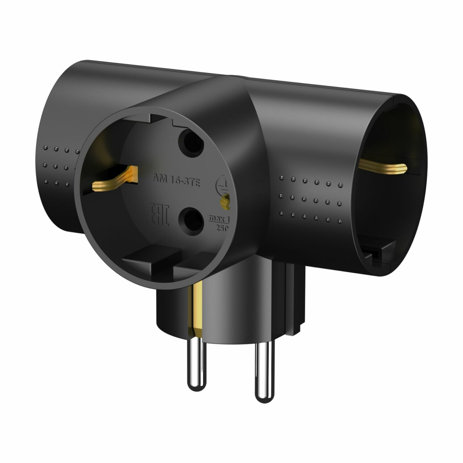 Купить Разветвитель тройник для розетки фотон, Т-образный 16А с заземлением, черный