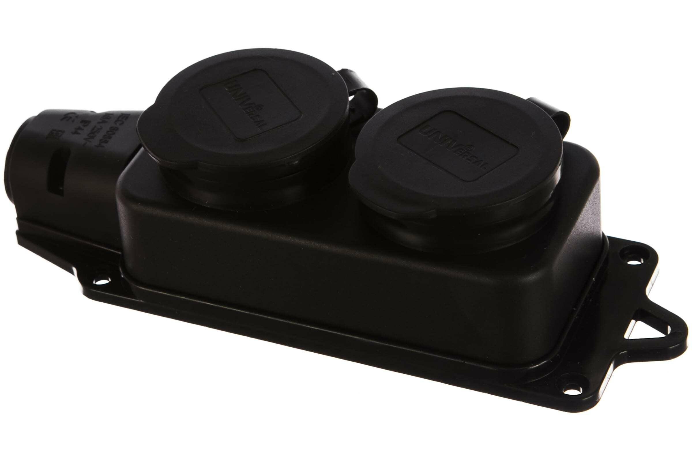 Колодка UNIVersal двухместная однофазная с заглушками (каучук). 1027 Универсал