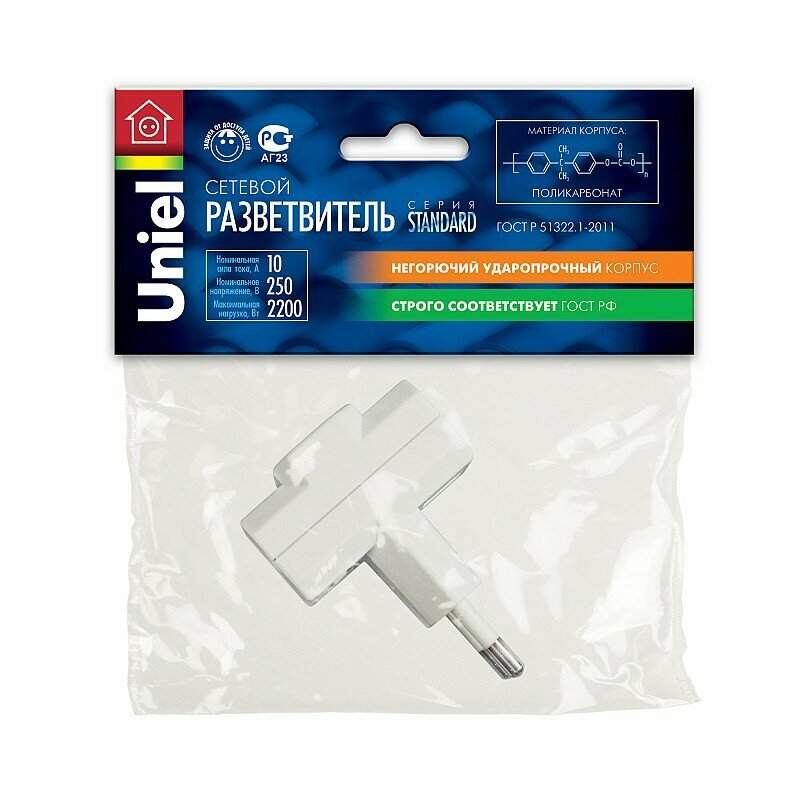 Типы/Электротовары/Розетки Uniel Переходник сетевой Uniel 3гн б/з Стандарт S-ES3-10T 06705