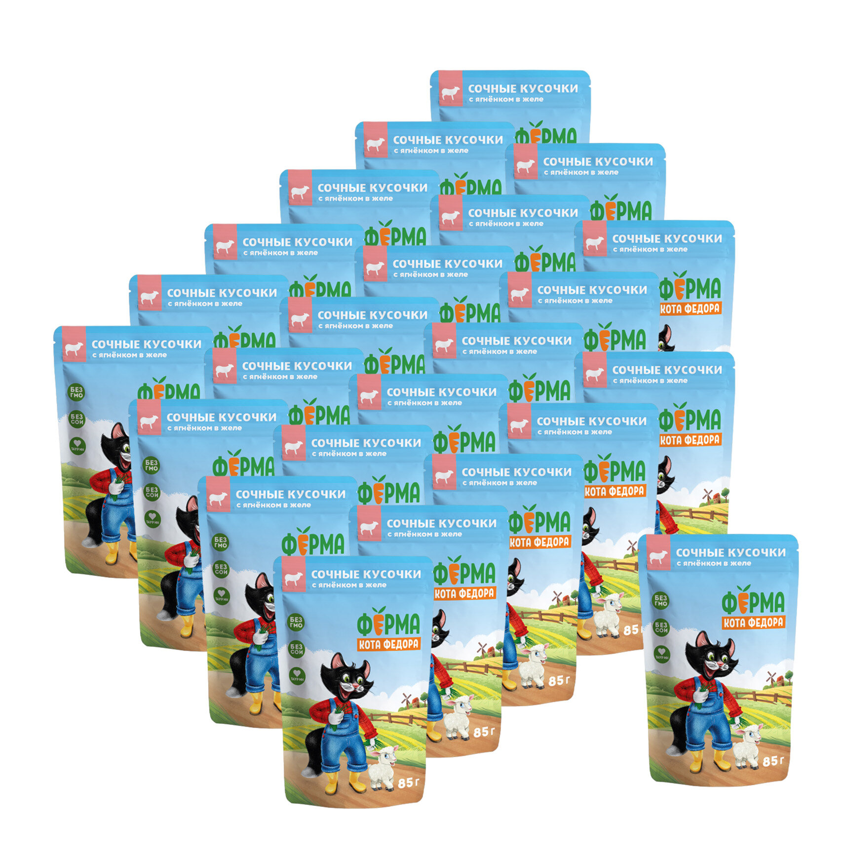 Купить Влажный корм Ферма кота Фёдора сочные кусочки в желе для кошек с ягненком 85г х 24 шт.
