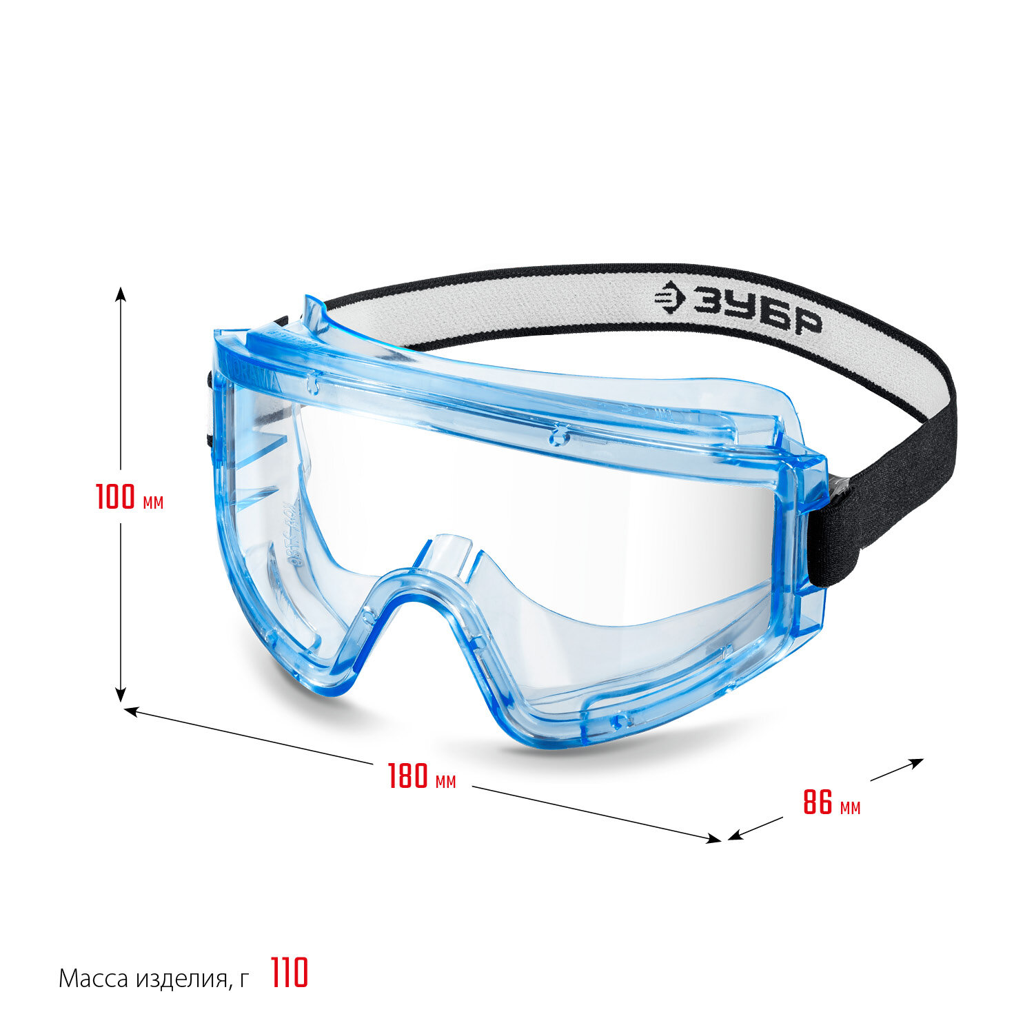 Панорамные защитные очки ЗУБР профи 7, химическистойкая ацетатная линза, закрытого типа с непрямой вентиляцией