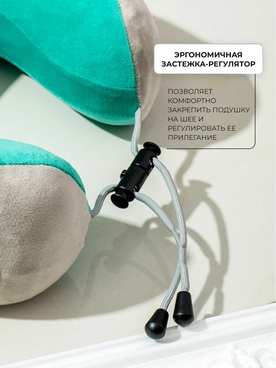Дорожная подушка-подголовник для шеи BRADEX с завязками, серо-зелёная KZ 0558