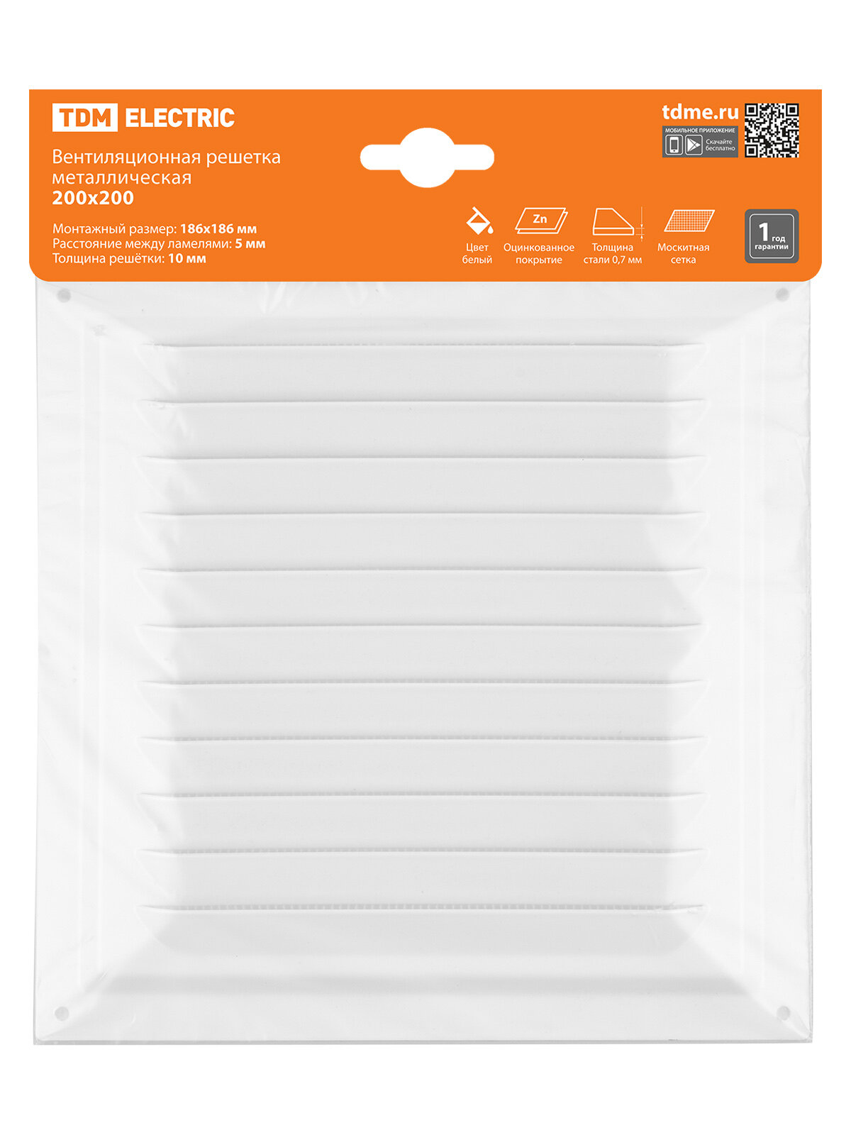 Решетка металл. 200х200, белая, с покрытием полимерной эмалью, TDM