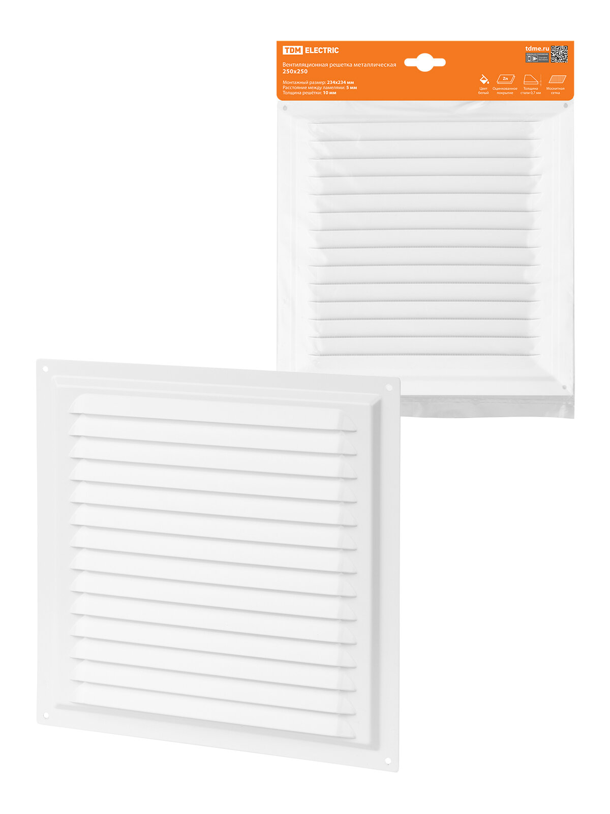 Решетка металл. 250х250, белая, с покрытием полимерной эмалью, TDM
