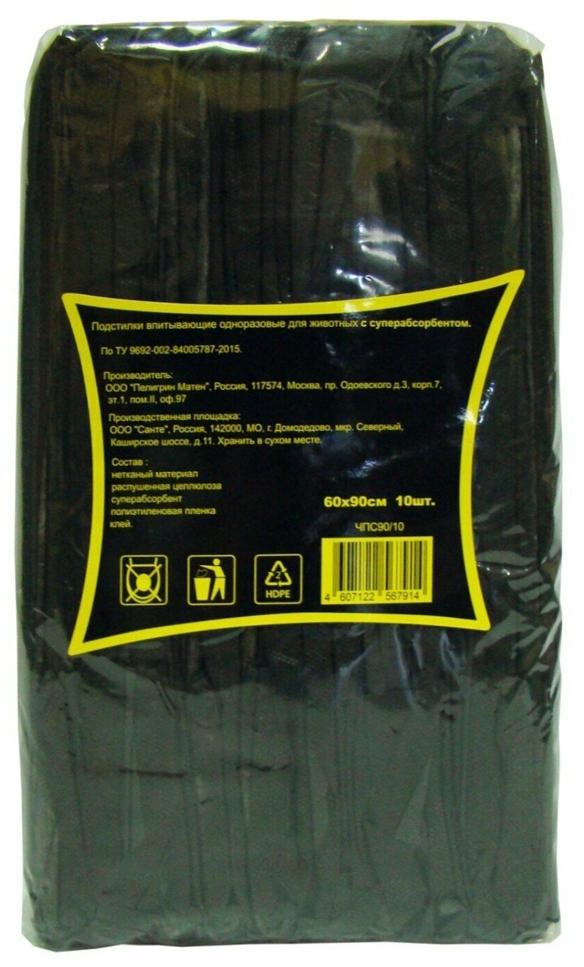 Подстилки впитывающие для животных с суперабсорбентом 60х90 см, 10 шт, черные
