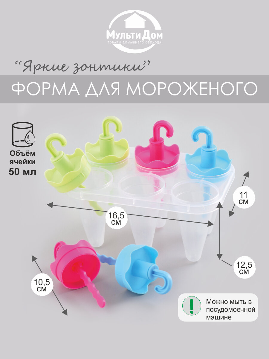 Форма для мороженого МультиДом Яркие зонтики VL80-353 с подставкой 6 ячеек