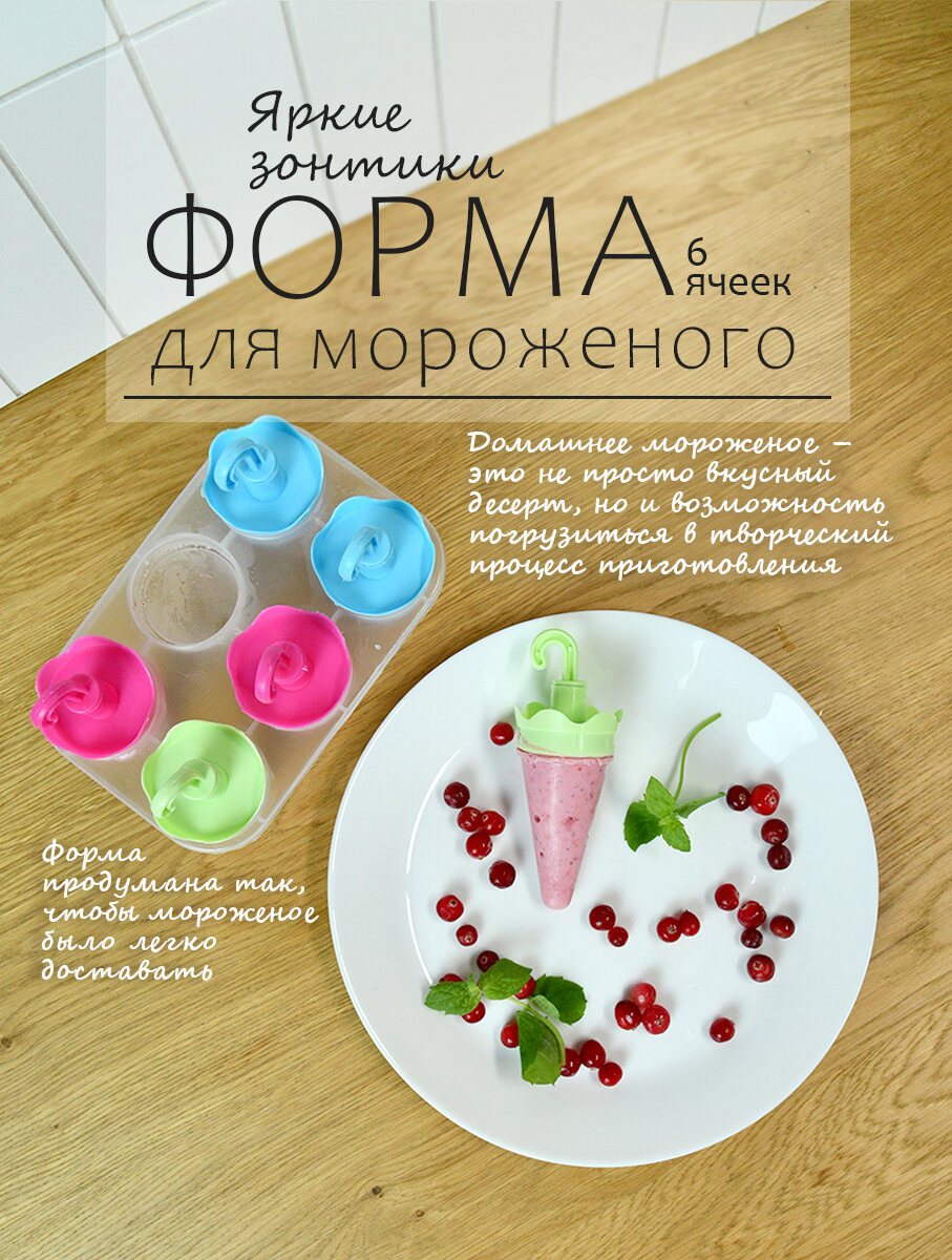 Формы для мороженого "Яркие зонтики". 6 ячеек. интересное: