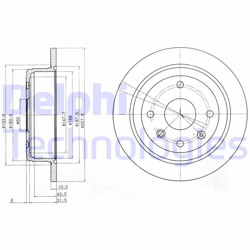 Диск Торм. Зад.[258x10,6] 4 Отв. Delphi арт. BG4091