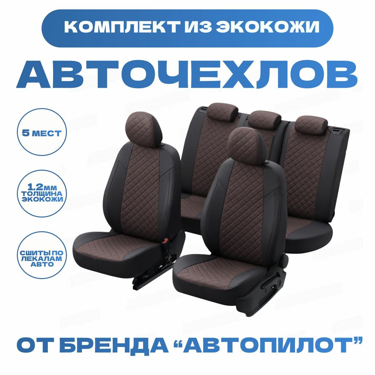 Чехлы Автопилот для Kia Sportage 4 (2015-2022), Экокожа Ромб Коричневый + Коричневый