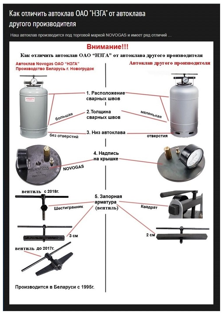 | Отзыв: | Настоящий белорусский автоклав. Простой и надежный как трактор Беларусь. Бывает много подделок с плохими швами, смотрите в интернете, как отличить оригинал.