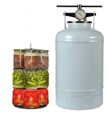| Плюсы: | Простой, удобный, надежный белорусский автоклав. Вместимость: 21 штука поллитровых банок. |