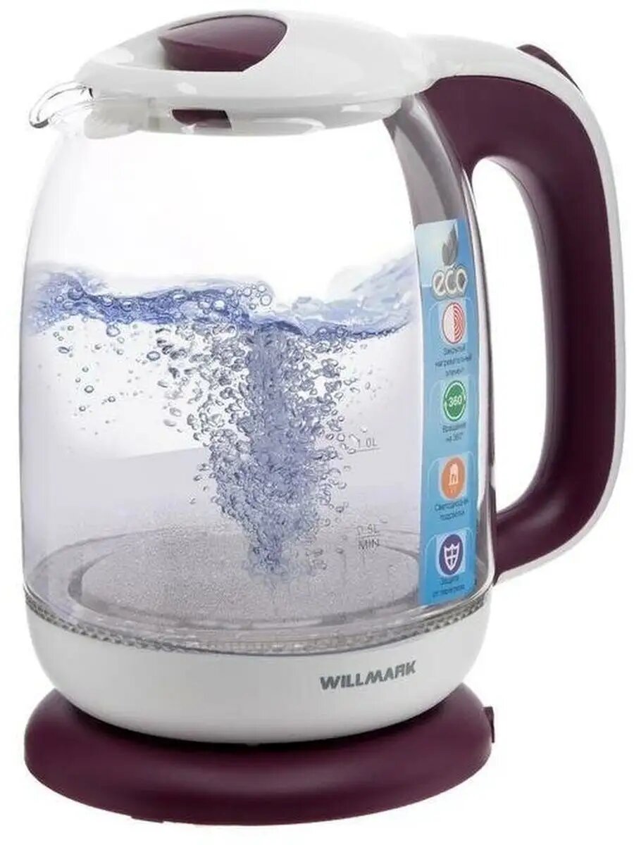 Willmark Чайник электрический WILLMARK WEK-1704G, стекло, 1.7 л, 2200 Вт, бело-фиолетовый