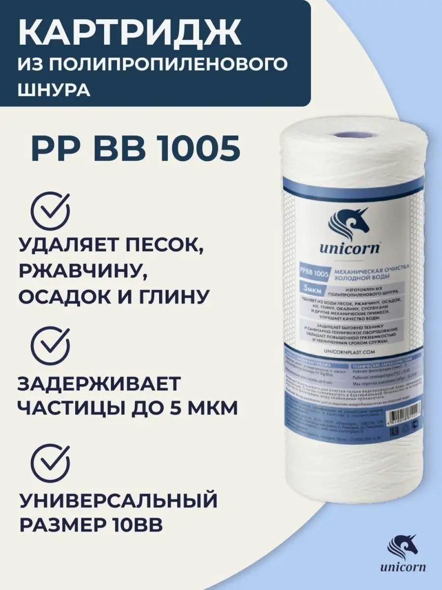 Unicorn Картридж механический из полипропиленового шнура 10 BB 1мкм РР BB 1001 РР ВВ 1001 .