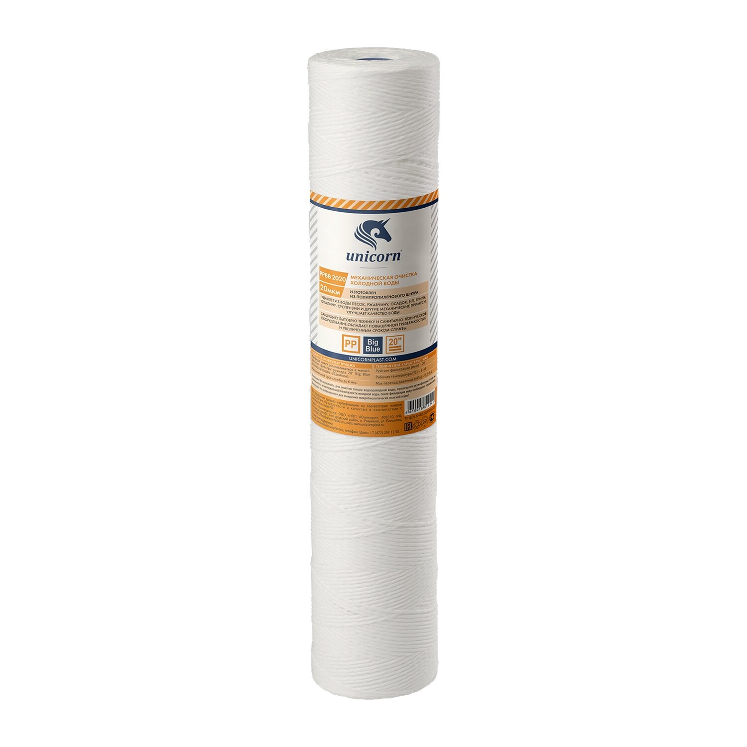 Картридж из п/п шнура для механической очистки воды Unicorn PP20BB20 20BB 20МКМ ИС.230086 541189