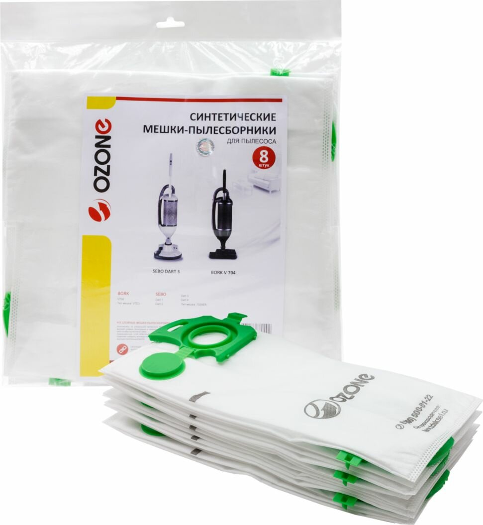 Мешки-пылесборники Ozone синтетические 8 шт для BORK, SEBO
