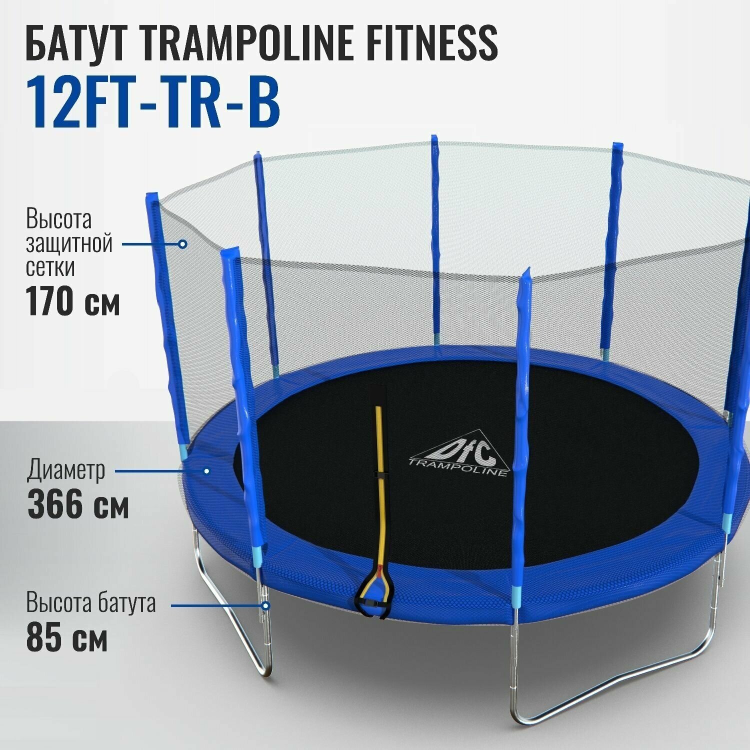 Батут с защитной сеткой DFC Trampoline Fitness 12FT голубой внешняя сетка