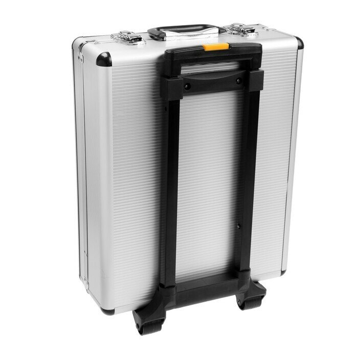 | Плюсы: | инструменты прочные, всё необходимое в одном чемодане, выдвижная ручка и колёсики |