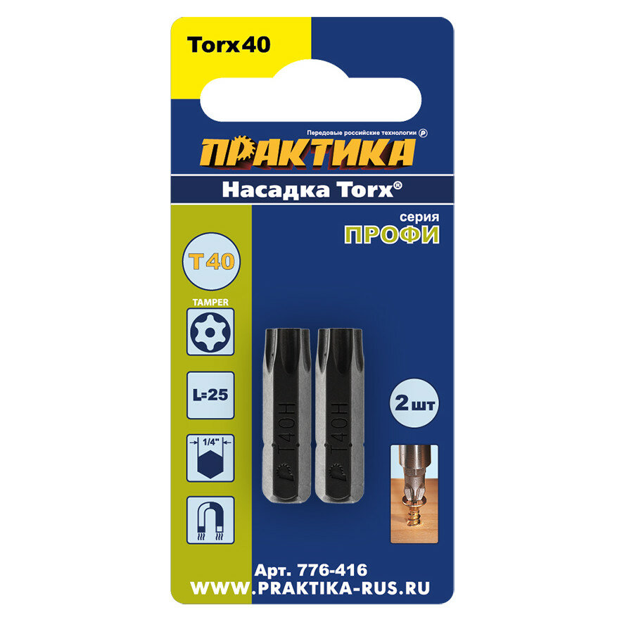 Бита "Профи" Torx Tamper-40 х 25мм (2шт), блистер ПРАКТИКА 776-416