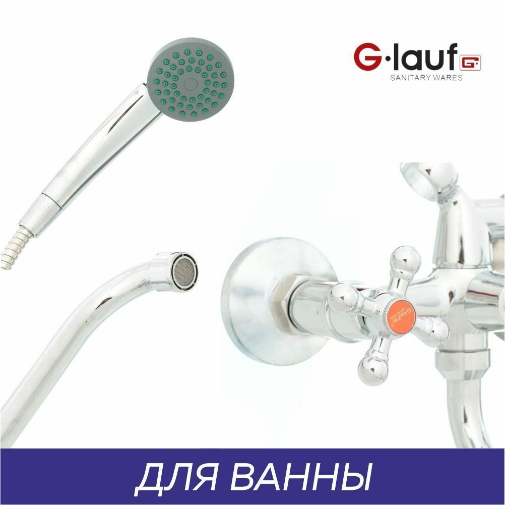 СохранитьСмеситель для ванны с душем/ с длинным изливом/ двухвентильный / кран для ванной G.lauf JMX7-A605, цвет: хром интересное: