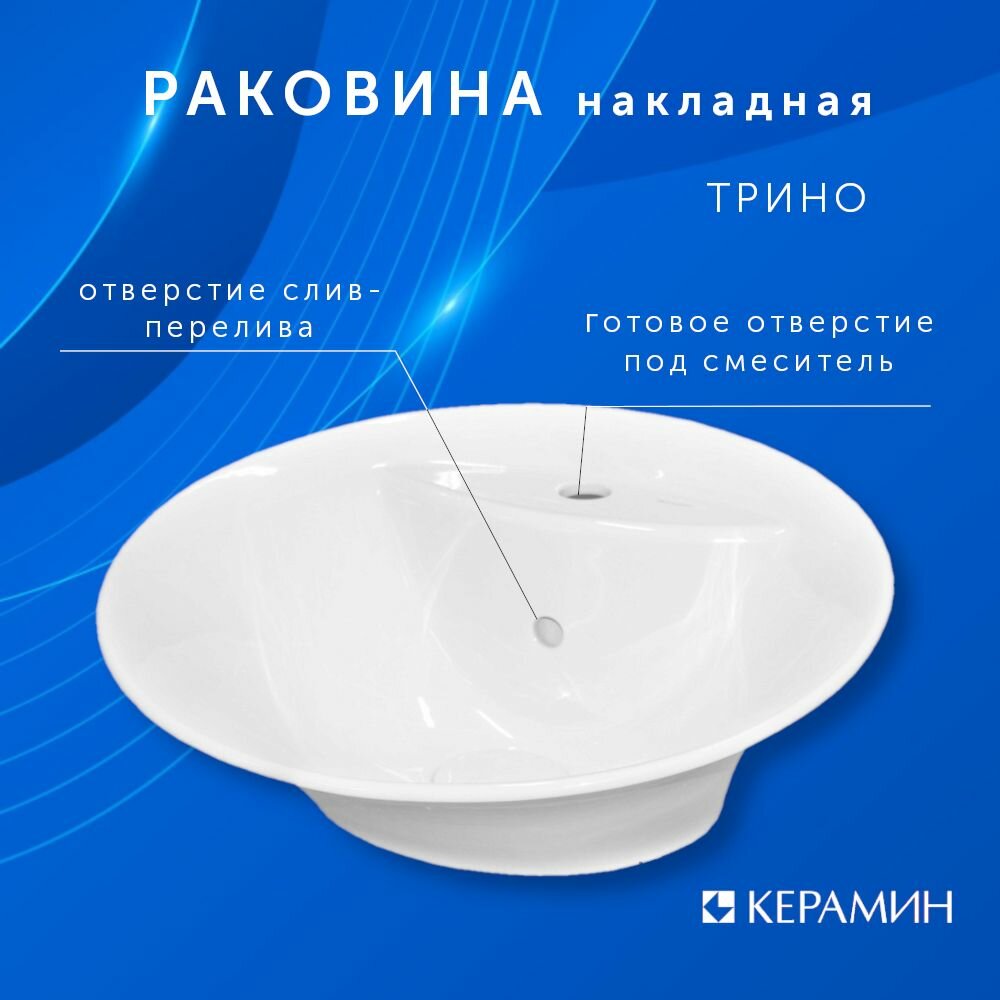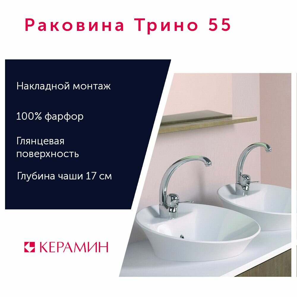 Раковина Keramin Трино 55 см накладная белая (00-001058) интересное: