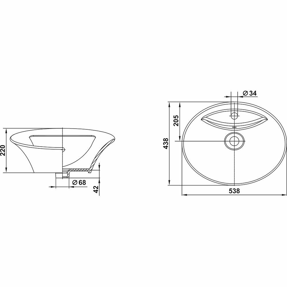 Раковина Keramin Трино 550 мм накладная белая (00-001058)