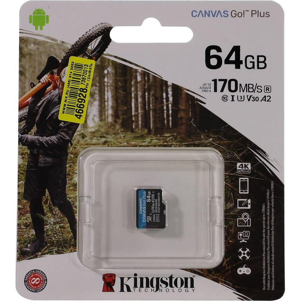 Карта памяти Kingston Canvas Go! Plus microSDXC UHS-I Cl10 +ад, SDCG3/64Gb, 1 шт.