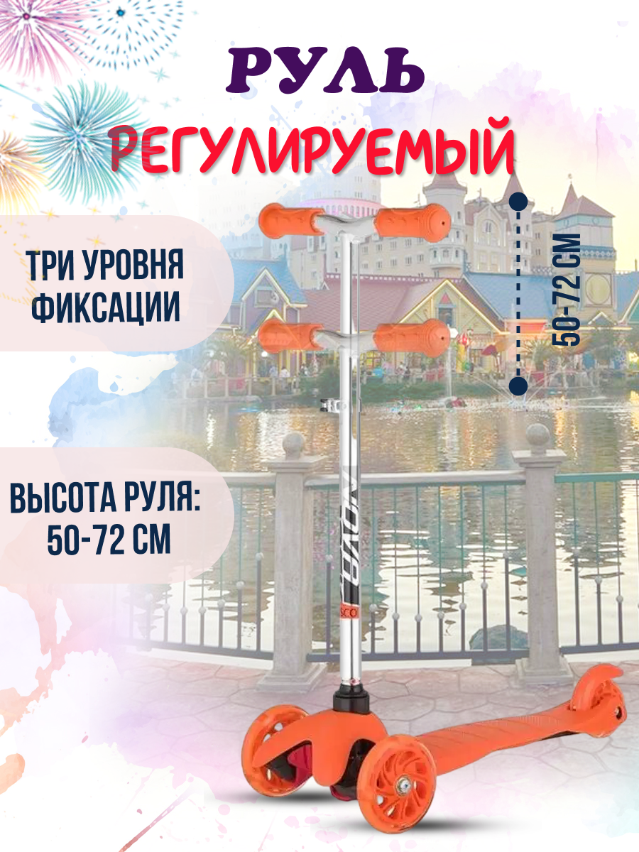 Самокат детский Novatrack Disco-kids Basic, свет.кол. пер.120*24 задн.76*24мм::Оранжевый 120H.DISCOK