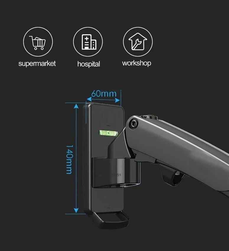 | Плюсы: | Очень удобный крепёж. Повесил на него моноблок 24" используя переходник. Легко перемещается и можно настроить как угодно, не занимает место на столе и провода не мешаются. |