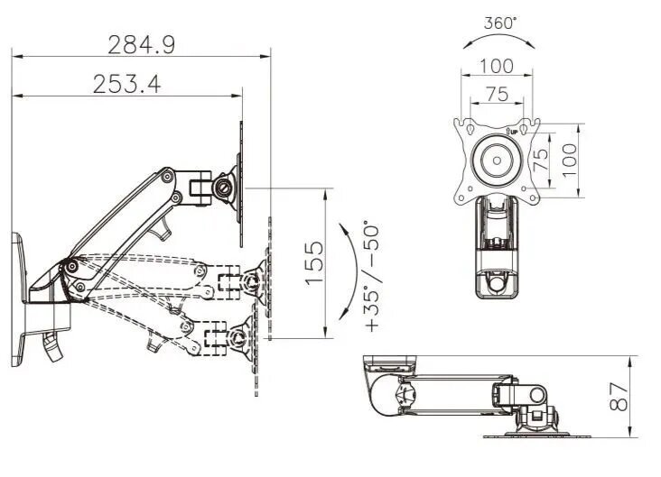 | Отзыв: | Легко держит монитор 27". Если рассчитываете поворачивать монитор больше 19" перпендикулярно к стене, стоит брать другую модель крепления (с дополнительным коленом), у этой длинны не хватит. |