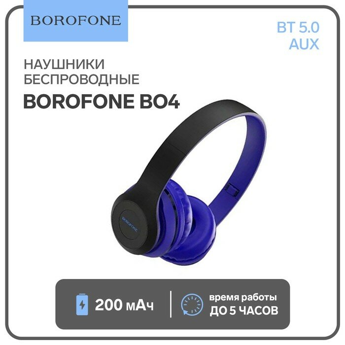 Наушники и гарнитуры Borofone Наушники Borofone BO4 Charming rhyme, беспроводные, накладные, BT5.0, AUX, 200 мАч, синие