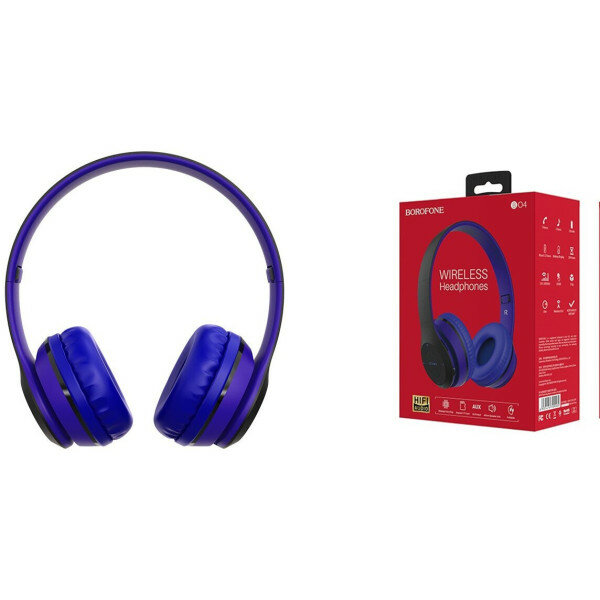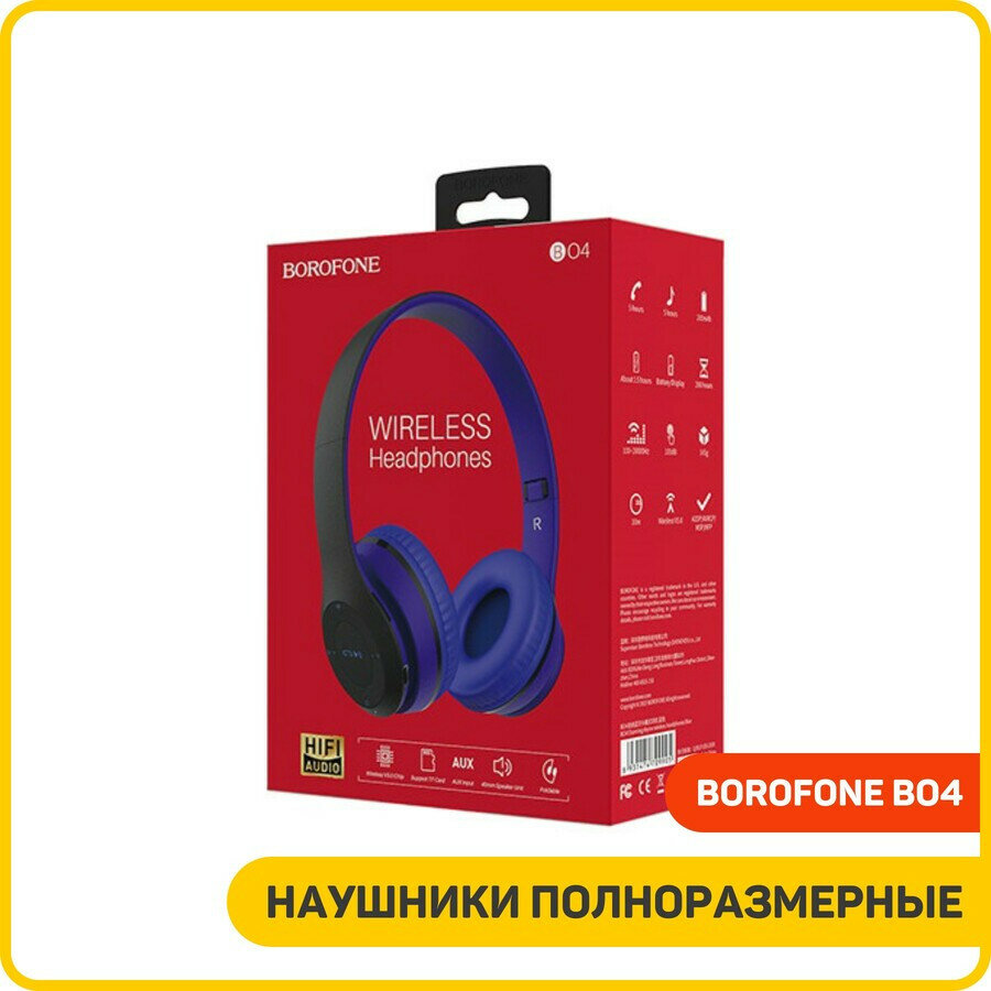 Стереонаушники Bluetooth полноразмерные Borofone BO4, синие