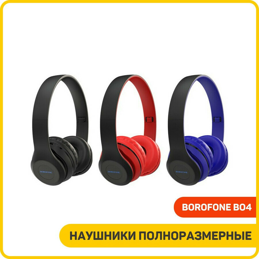 Стереонаушники Bluetooth полноразмерные Borofone BO4 BT5.0/200mAh/5ч красные