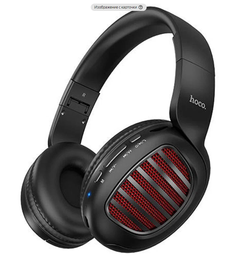Bluetooth гарнитура HOCO W23 Brilliant Sound BT5.0, 3.5 мм, microSD, накладная, LED, гр +/- (черный)