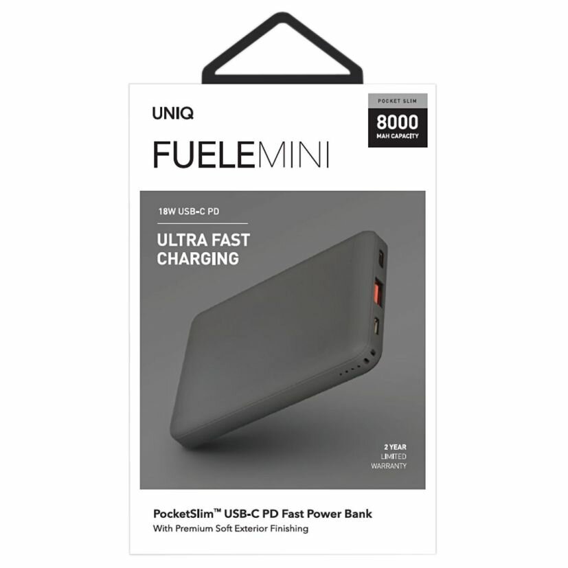 Внешний аккумулятор Uniq Fuele Mini 8000mAh USB-C PD18W +USB QC3.0 Grey
