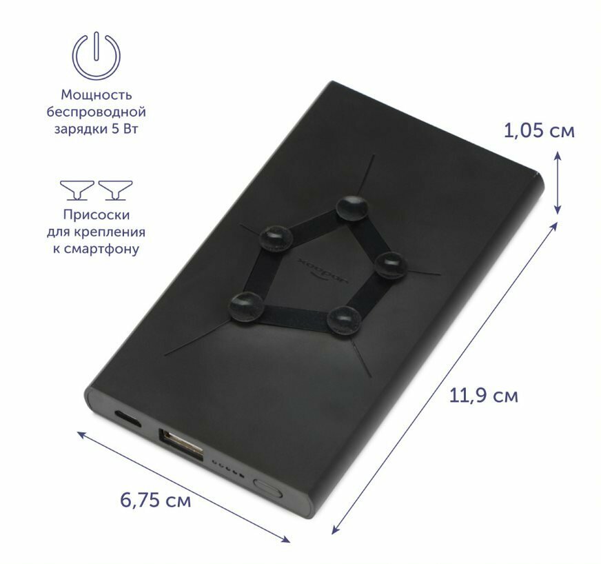 Power bank XOOPAR "Geo Wireless", 5000 mAh, беспроводная зарядка, 1 шт., черный