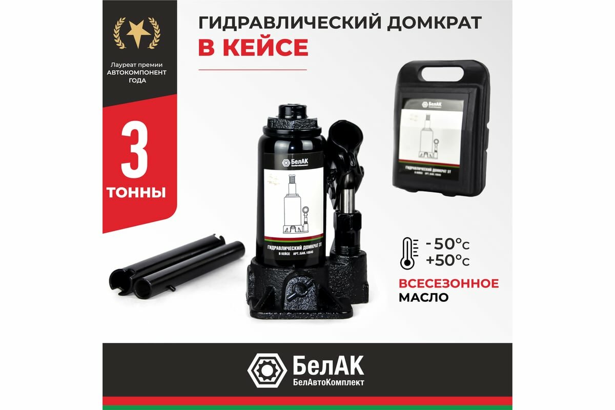 Домкрат гидравлический бутылочный 3т в кейсе / домкрат автомобильный БелАК