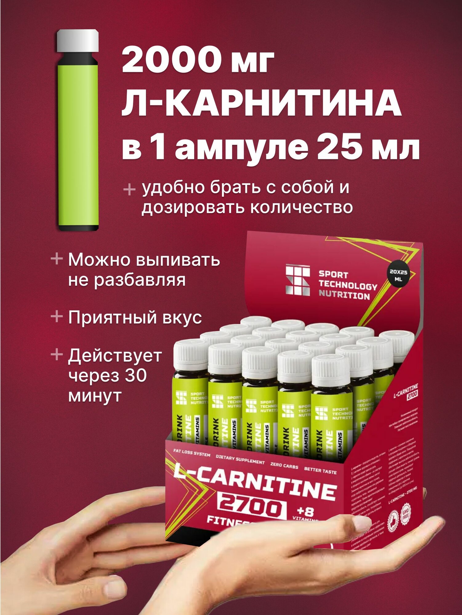 Купить L-карнитин 2700 мг, 20 ампул по 25 мл, яблоко, жиросжигатель для похудения мужчинам и женщинам, Л карнитин