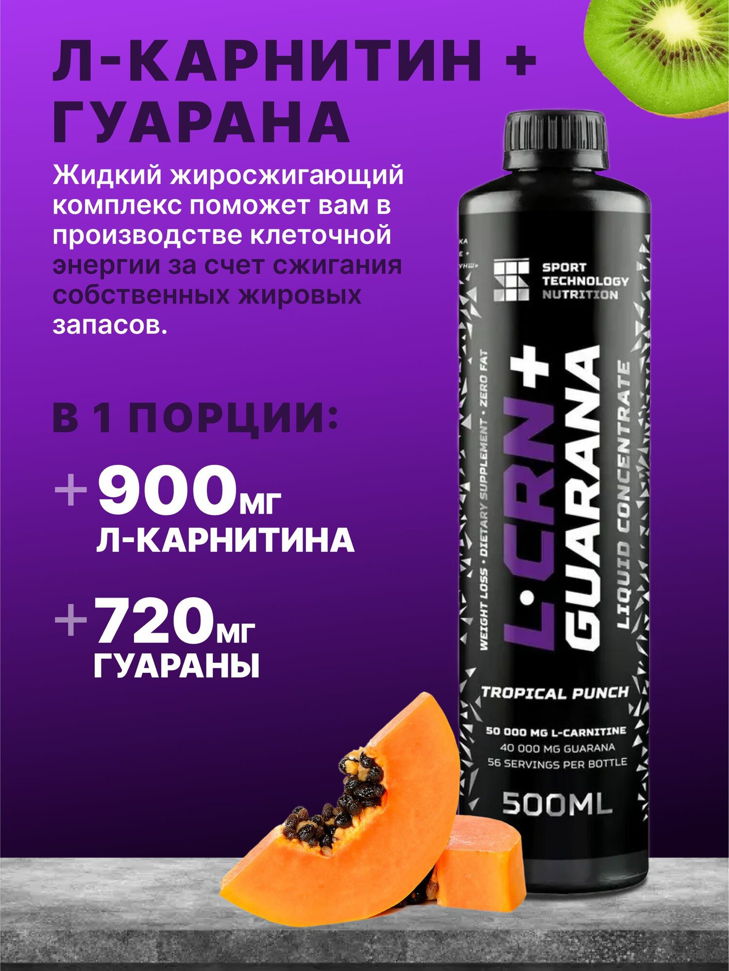 СохранитьЛ-Карнитин + Гуарана концентрат Тропический пунш, 500 мл, L-carnitine + Guarana, Для похудения Снижение веса Жиросжигатель интересное: