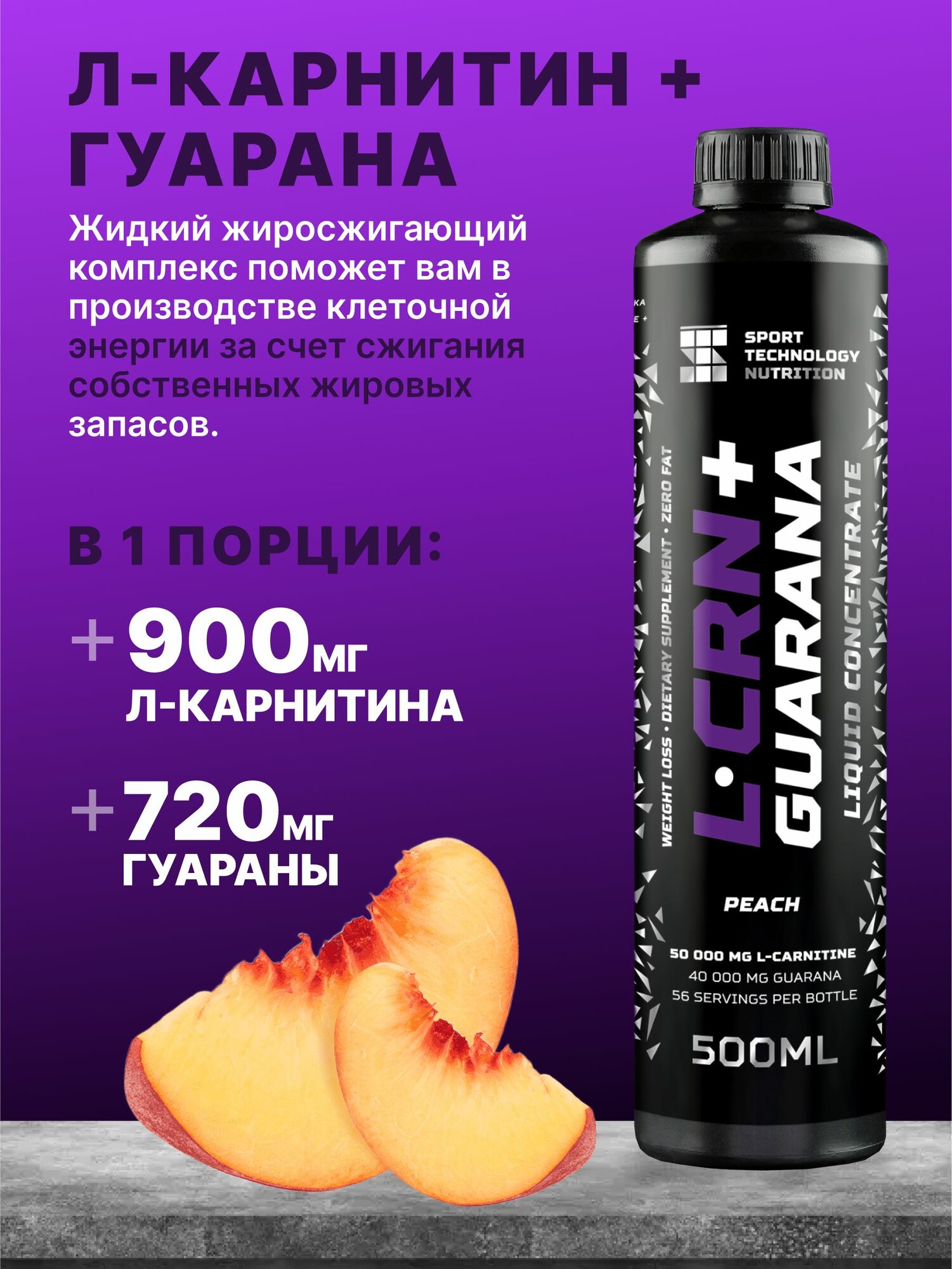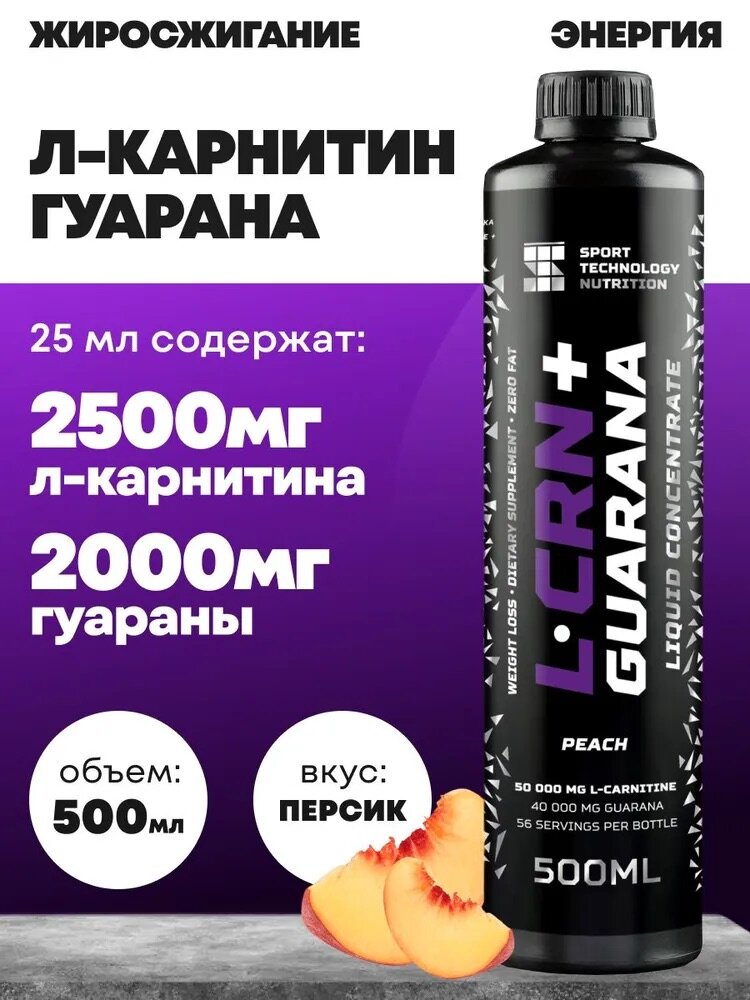 Жиросжигатель Карнитин и гуарана со вкусом персика L-CRN & Guarana peach SportTehnology 1000 мл.