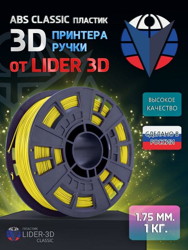 ABS пластик LIDER-3D Classic для 3D принтера 1.75 мм, Жёлтый, 1 кг