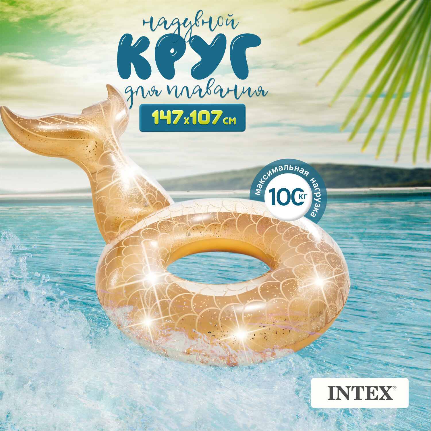 надувной круг Intex русалка блестящий 147х107х79см от 9лет