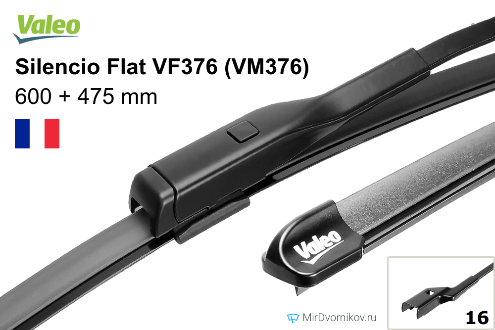 Комплект стеклоочистителей Valeo Silencio Flat VF376 Valeo 574476